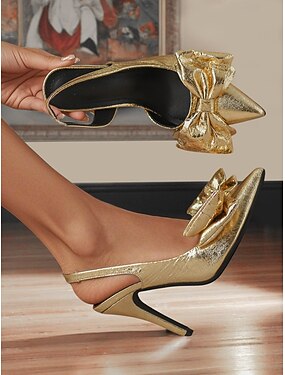 Damen-Pumps im Stil der 50er Jahre mit metallisch-grüner Schleife – elegante Slingback-Stilettos mit spitzer Spitze für Partys, Abschlussbälle und glamouröse Vintage-Looks