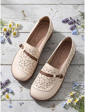 Damen-Mikrofaser-Loafer – Vintage-Slipper mit Lochmuster, flacher Schnitt, ideal zum Hineinschlüpfen und für Freizeit und Spaziergänge &Bürokleidung