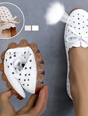 Weiße faltbare Damen-Loafer – atmungsaktive perforierte Ballerinas mit Schleifendetail, weiche Sohle, lässige Komfortschuhe für Arbeit, Reisen und den Alltag