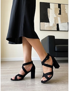 Elegante schwarze Wildledersandalen mit Blockabsatz für Damen – bequeme Riemchensandalen mit offener Zehenpartie &Knöchelriemen für Arbeit, Bürokleidung &Business-Casual-Veranstaltungen