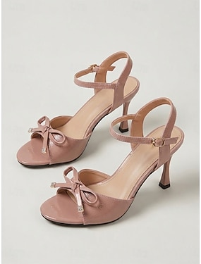Rosafarbene, offene Zehenpartie, hohe Absätze und Schleifenverzierung, elegante Schuhe für Hochzeitsgäste bei Gartenhochzeiten &Veranstaltungen im Freien