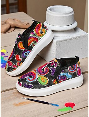 Damen-Sneaker zum Hineinschlüpfen mit Stickerei – farbenfrohes Paisley-Design mit bequemer Sohle, ideal für lässige Tageskleidung und modische Looks