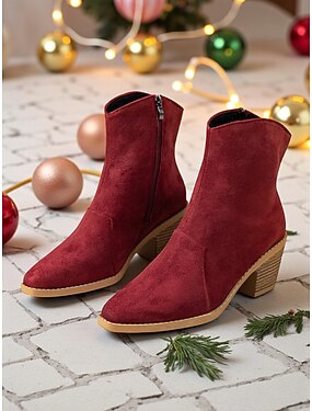 Rote Wildlederstiefeletten für Damen mit Reißverschluss und klobigem Blockabsatz, bequem und stilvoll, perfekt für Weihnachten, Winterausflüge und alltägliche Anlässe