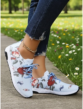 Gelbe Damen-Sneaker mit Blumenmuster – leichte, atmungsaktive Freizeitschuhe mit gepolsterter, rutschfester Sohle, modische Schuhe für Reisen, Outdoor-Aktivitäten und den Alltag