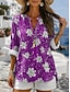 Damen Bluse Druck Blumen Grafik Vintage Täglich Stilvoll Langarm V Ausschnitt Normale Oberteile Lässig Täglich Blau Purpur Grün Sommer Frühling