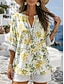 Damen Bluse Knöpfe Druck Blumen Grafik Vintage Tropisch Stilvoll Kurzarm Rundhalsausschnitt Normale Oberteile Lässig Ferien Blau Weiß Gelb Purpur Grün Sommer Frühling
