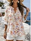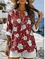 Damen Bluse Druck Blumen Grafik Vintage Täglich Stilvoll Langarm V Ausschnitt Normale Oberteile Lässig Täglich Blau Gelb Rosa Rote Purpur Sommer Frühling