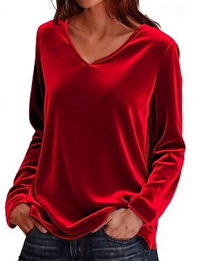 Damen T Shirt Patchwork Einfarbig Einfach Elegant Vintage Mode Langarm V Ausschnitt Normale Oberteile Täglich Ausgehen Wochenende Silber Rosa Wein Rote Königsblau Herbst Winter