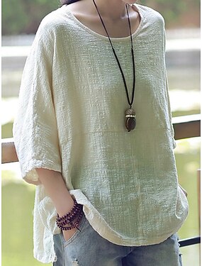 Damen Hemd Bluse Einfarbig Stilvoll Lässig Dreiviertelarm Rundhalsausschnitt Normale Oberteile Täglich Schwarz Weiß Wein Khaki Sommer Frühling