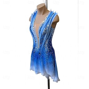 Eiskunstlaufkleid Damen Eislaufen Kleid Blau Patchwork Offener Rücken Dehnbar Training Wettbewerb Eiskunstlaufkleidung Klassisch Kristall / Strass Ärmellos Eislaufen Eiskundstlauf