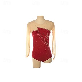 Eiskunstlaufkleid Damen Mädchen Eislaufen Kleid Rot Patchwork Daumenloch Netzstoff Spandex Dehnbar Training Übung Professionell Eiskunstlaufkleidung Thermowarm Kristall / Strass Langarm Eislaufen