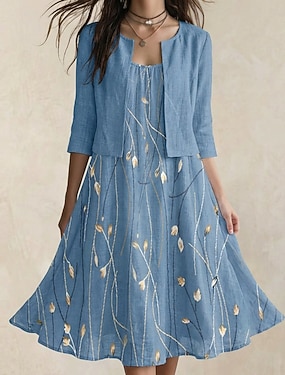 Damen Midikleid Shiftkleid Urlaub Lässig Boho Täglich Sommerkleid Frühlingskleid Normale Passform Blumen Grafik Dreiviertelarm Rundhalsausschnitt Blau Weiß Hellgrün Rote Sommer Frühling