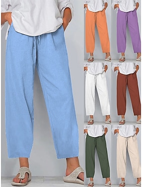 Damen Hose aus Baumwollleinen Sommerhose Abgeschnittene Hose Strandhose Einfach Lässig Komfort Knöchellang Mittlere Taille Einfarbig Tasche Elastischer Bund Atmungsaktiv Mikroelastisch Täglich Heim