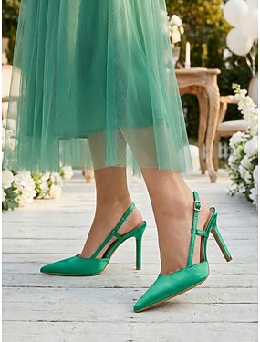 Grüne, spitze Slingback-Pumps für Damen, elegante High Heels für Hochzeitsgäste bei Trauungen im Freien