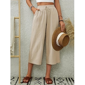 Damen Hose Sommerhose Strandhose Freizeithose Urlaub Mode Alltagstauglich Knöchellang Hohe Taille Einfarbig Einfach Kordelzug Gerader Schnitt Komfort Leicht Weich Unelastisch Streetwear Strand Ferien