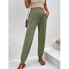 Damen Normal Stoffhosen Hosen Hose Haremshose Mode Stilvoll Volle Länge Hohe Taille Einfarbig Lässig Täglich Straße Schwarz Rosa Blau Khaki Sommer Frühling Herbst Winter