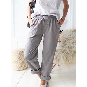 Damen Hose aus Baumwollleinen Sommerhose Hosen Hose Alltagstauglich Knöchellang Einfach Seitentaschen Elastischer Bund Atmungsaktivität Bequem Unelastisch Wochenende Blau Weiß Khaki Grau Frühling