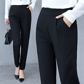 Damen Chinos Gerade Mode Streetwear Formell Volle Länge Hohe Taille Einfach Tasche Bequem Weich Unelastisch Outdoor Geschäft Büro Schwarz Weiß Frühling Herbst Normale Passform