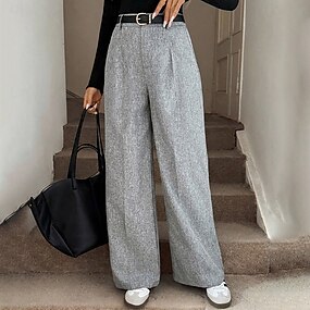 Damen Hose Sommerhose Freizeithose Elegant Vintage Mode Volle Länge Hohe Taille Einfach Gerader Schnitt Komfort Atmungsaktivität Weich Unelastisch Streetwear Büro Arbeit Grau Sommer Frühling Herbst
