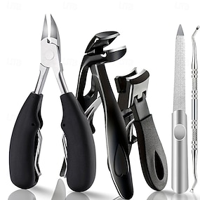 5-teiliges Nagelknipser-Set aus Edelstahl, Zehennagelknipser mit großer Öffnung und rutschfestem Gummigriff, scharfe Klingen, spritzwassergeschützter Fingernagelschneider für dicke Nägel