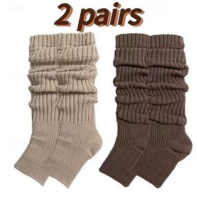 2 Paar Damen-Sockenüberzieher – warmer Winter-Beinschutz in Beige- bis Brauntönen, elegantes Design zum Überziehen, geeignet für Stiefel und Schuhe, bequemer Tragekomfort im Herbst und Winter –