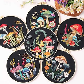 Pilz-Stickerei-Starter-Set mit Anleitung und Mustern. Pilz-Kreuzstickerei-Set für Erwachsene, Kinder und Anfänger, inklusive Pilz-Mustertuch, Stickrahmen, Fäden und Nadeln.