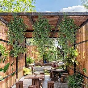 6 künstliche Mandala-Hängepflanzen, künstliche Efeuranken, Kunststoffgrün für die Dekoration von drinnen und draußen, an Wänden, in Körben oder an der Decke.