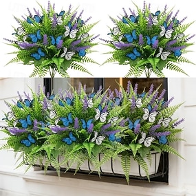 13-teiliges gemischtes Set aus künstlichen Schmetterlings-, Lavendel- und Farnsträußen – UV-beständige Kunstblumen für die Festtagsdekoration, in frischen Blau- und Lilatönen mit