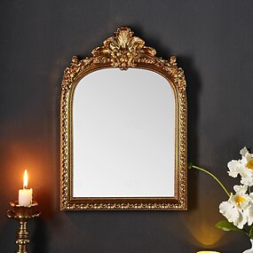 Dekorativer Wandspiegel mit goldenem Harzbogen und Spitze, europäischer Wohnstil, perfekt für Wanddekoration, Schminkspiegel und als Fotorequisite.