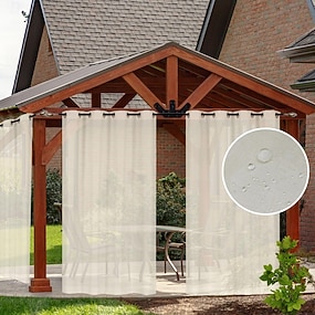 Outdoor-Vorhang für die Terrasse, weiße, halbtransparente Vorhänge in Leinenoptik, wasserdicht, lichtfilternd, Voile, Ösenvorhänge für Pergola, Balkon, Pool, Innenbereich