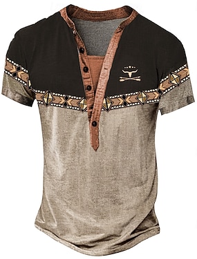 Herren Stammes Ethnisch T Shirt Henley Hemd T-Shirt Kurzarm Designer Basic Klassisch Outdoor Lässig Täglich Sommer Dunkel Braun Marineblau Henley-Kragen Henley Henley T-Shirt