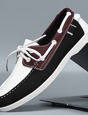schwarz-weiße zweifarbige Bootsschuhe für Herren mit klassischem Schnürdesign, bequem und stilvoll, ideal für Strandausflüge, Freizeitkleidung und Sommerveranstaltungen