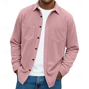 Herren Hemd Freizeithemd Arbeitshemd Cordhemd Knopfhemd Blau Rosa Marineblau Purpur Braun Langarm Einfach Hemdkragen Lässig Täglich Fronttasche Bekleidung Elegant Mode Lässig