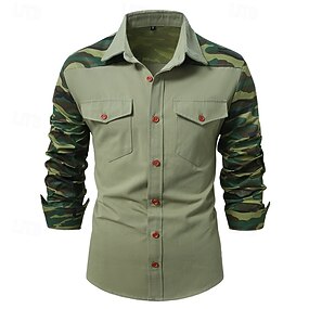 Herren Hemd Arbeitshemden Freizeithemd Arbeitshemd Knopfhemd Cargohemd Schwarz Grün Beige Langarm Tarnung Umlegekragen Outdoor Täglich Fronttasche Bekleidung Mode