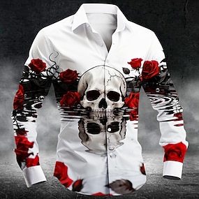 Herren Schädel Rose Blumen Hemd Knopfhemd Langarm Dunkler Gothic-Stil Lässig Outdoor Ferien Frühling Herbst Umlegekragen 3D-Druck Hemden mit Kragen Weiß / Blau Weiß und Lila weiß Rot