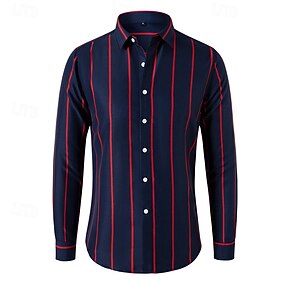 Herren Hemd Kleidhemd Knopfhemd Gestreift Hochzeit Party Schwarz Weiß Rote Dunkelgrün Langarm Revers Frühling & Herbst Bekleidung