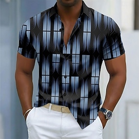 Herren Geometrische Muster Hemd Knopfhemd Kurzarm Modisch lässig Täglich Festtage Sommer Umlegekragen Hemden mit Kragen Knopf Bedruckt Schwarz