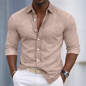 Herren Hemd Popover-Hemd Freizeithemd Strandhemd Cordhemd Braun Grün Dunkel Blau Aprikose Langarm Einfarbig Revers Urlaub Lässig Tasche Bekleidung Mode Lässig Bequem