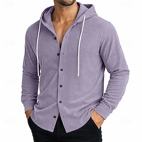 Herren Hemd Freizeithemd Cordhemd Knopfhemd Schwarz Weiß Hellgrün Rote Marineblau Langarm Einfach Mit Kapuze Lässig Täglich Mit Kapuze Bekleidung Elegant Mode Lässig