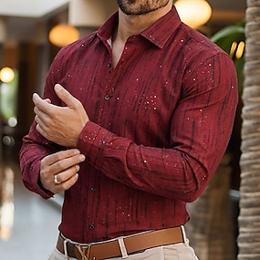 Herren Kleidhemd Gestreift Lässig Täglich Schwarz Weiß Rote Grün Langarm Umlegekragen Sommer Frühling Bekleidung