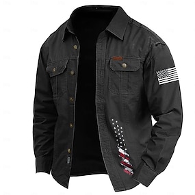 Herren Amerikanische US-Flagge Arbeitshemd Westernhemd Cargohemd Langarm Lässig Taktisch Sport & Outdoor Ausgehen Winter Frühling & Herbst Umlegekragen Druck Schwarz Armeegrün Blau Khaki