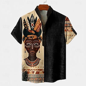 Herren Ethik / Afrikanisch Indigene Völker Hemd Durchgeknöpft Hemd Kurzarm Vintage-Retro Ferien Alltagstauglich Sommer Frühling Stehkragen Henley-Kragen 3D-Druck Leinenähnliches Hemd Cachi scuro