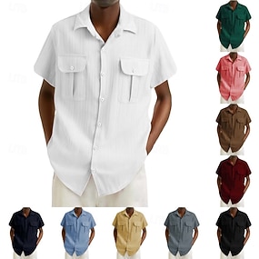 Herren Hemd Textur Arbeitshemd Jacquard-Hemd Dunkelbraun Schwarz Weiß Rosa Wein Kurzarm Einfach Revers Täglich Urlaub Tasche Bekleidung Streetwear Lässig