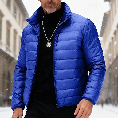 Herren Wintermantel Daunenjacke Gefütterte Jacke Tasche 50% weiße Entendaunen Urlaub Alltagskleidung Date Regulär Mode Lässig Bequem Thermowarm Herbst Winter Einfarbig Wein Schwarz Marineblau
