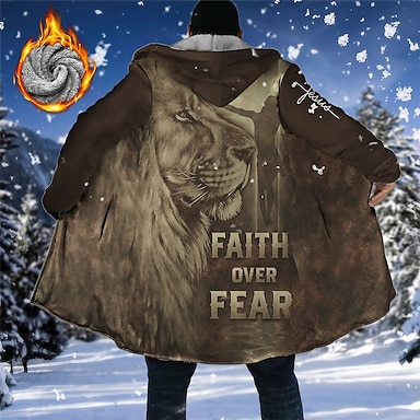 Herren Löwe Buchstabe Grafikdrucke Wintermantel Fleecejacke Mantel Warm Bequem Atmungsaktiv Mode Streetwear Sport Sport & Outdoor Alltagskleidung Ausgehen Reißverschluss Tasche Druck Herbst Winter