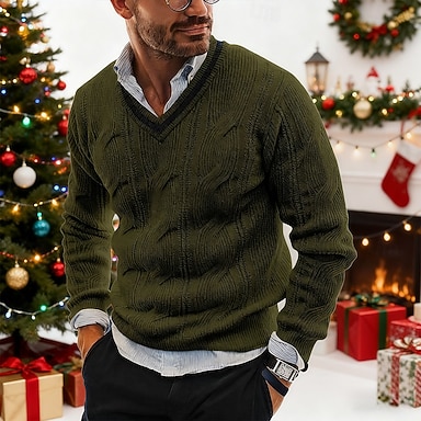 Herren Pullover Gerippt Zopfmuster Stricken Abgeschnitten Gestrickt V Ausschnitt Ausgehen Wochenende Bekleidung Herbst Winter Armeegrün Beige M L XL