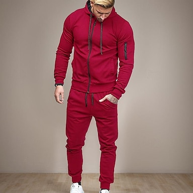 Herren Trainingsanzug Jogginganzug Kapuzenshirt mit durchgehendem Reißverschluss Jogginganzüge Schwarz Wein Armeegrün Marineblau Dunkelgray Mit Kapuze Feste Farbe Zip 2 Teile Sport & Natur Täglich