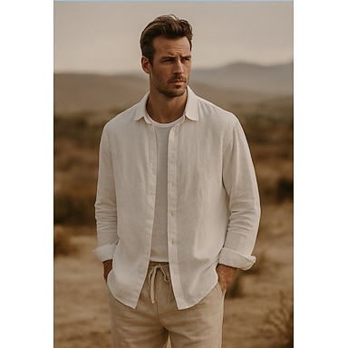 Herren Leinenhemd Durchgeknöpft Hemd Freizeithemd Einfarbig Formell Lässig Weiß Hellgrün Rote Dunkelmarine Langarm Umlegekragen Sommer Winter Bekleidung Rein