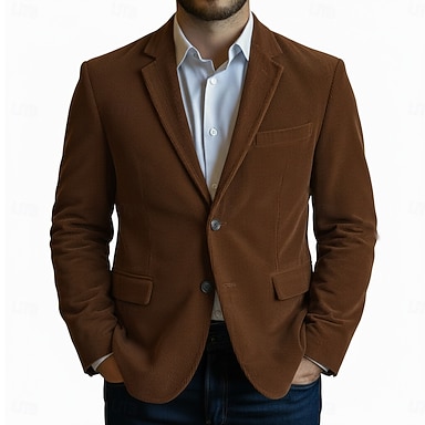 Herren Cordjacke Blazerjacke Notch-Kragen Vintage Mode Klassisch Gestreift Einfarbig Blazer Schwarz Braun Grün Figurbetonter Schnitt Einreihig Zwei-Knöpfe