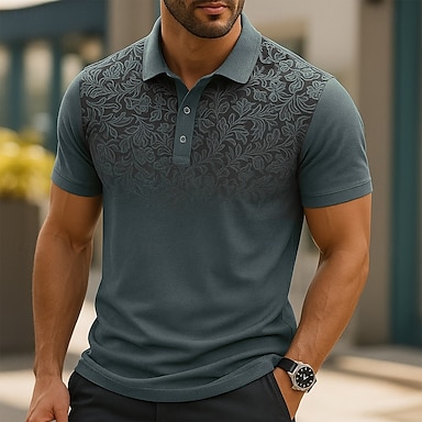 Herren Männlich Blumen Blumenmuster Polo Strick-Polopullover Kurzarm Umlegekragen Polokragen Modern Formell Arbeit Sport & Outdoor Knöpfe Drucken Frühling Rubinrot Weiß Hellblau